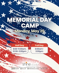 Join us for School Break Shine Camp and enjoy all the innovative and creative activities you love from our popular summer camp. Activities may include: music and movement, signature Shine craft projects, visits from performing and visual art specialists, gardening, outdoor play, and more! Choose from a full day session, morning, or afternoon sessions with the option to stay for lunch. *For full day campers only: Families must provide a packed lunch.*